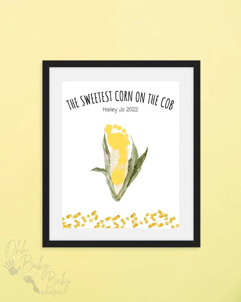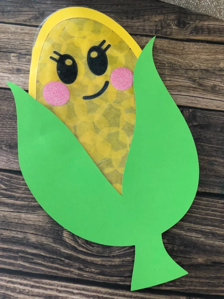 Get this printable corn-themed footprint keepsake template for another fun fall art project. Or, make a simple corn suncatcher to hang in the window throughout the fall months.