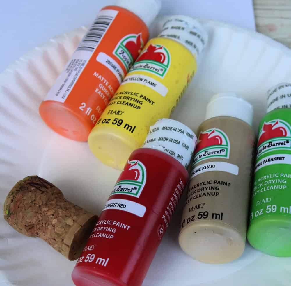 Pour a quarter-sized dab of paint on a paper plate or in a plastic paint palette. Kids can use all of the fall colors or just a few. Let them use their creativity to decide.