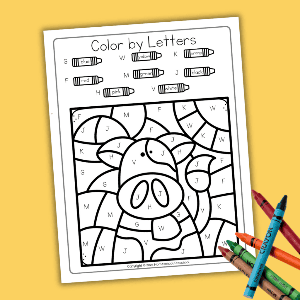 These fun color by letter worksheets don’t just entertain; they serve as a captivating tool for teaching kids about letters, sharpening their fine motor skills, and even sparking a love for animals, especially cows!