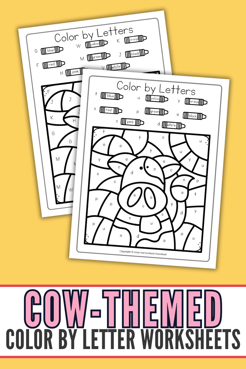 Each worksheet features a cow illustration with letters that correspond to different colors. The instructions are easy to follow, making these worksheets suitable for children of all levels and abilities.