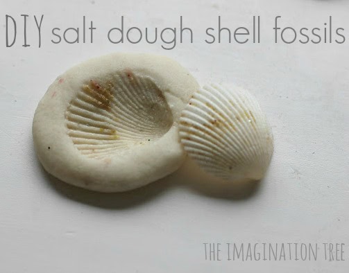Make beautiful fossils and nature print keepsakes with shells and some salt dough with your kids.