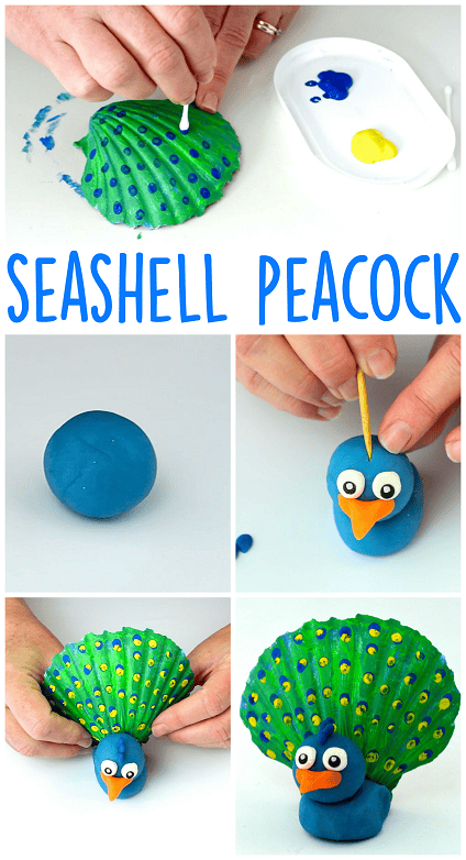 Using play dough and seashells, you can turn them into a really cool peacock craft that your kids will love creating.