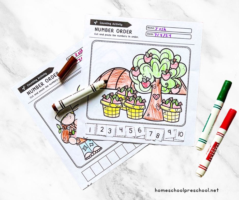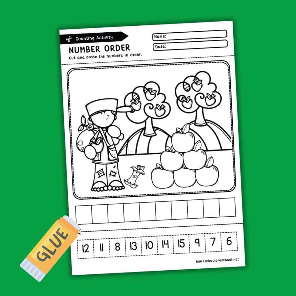 As children work through the activity, they will strengthen their number recognition and ordering skills while learning about Johnny Appleseed.