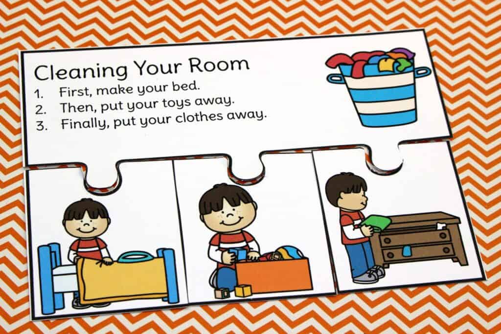 - How this helps: Children will look at the different parts of a task and think critically about what comes first, next, and last. This encourages problem-solving as they work out the proper order of events.
