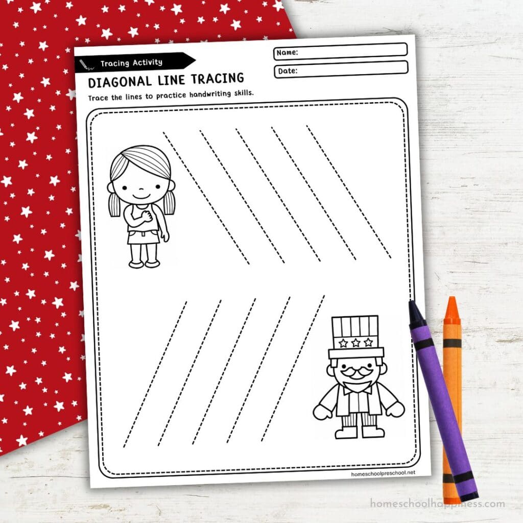 Diagonal line tracing gives kids a fun way to practice pencil control while building early handwriting skills.