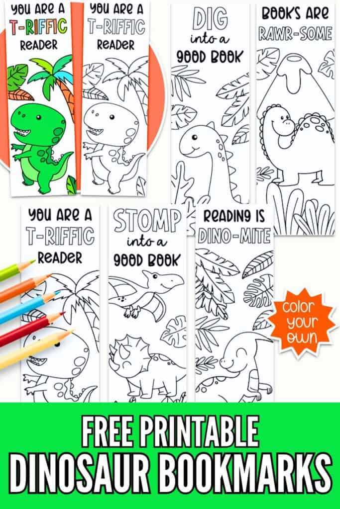 Kids love dinosaurs, and these dinosaur coloring printables make learning extra fun! These dinosaur activities for preschool help little ones practice fine motor skills while coloring their own bookmarks.