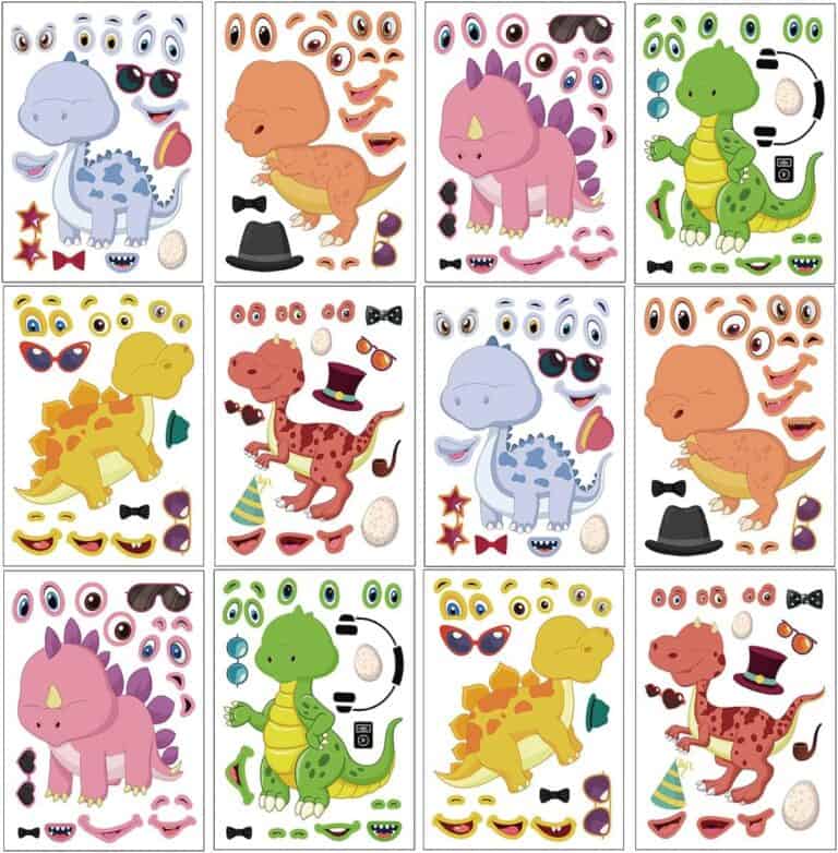 Craft Your Own Dinosaur Stickers is an exciting kit where you get to mix and match eyes, mouths, and accessories to create your very own dino characters! No coloring needed – just pick the perfect combination of features and peel off the stickers. Once you've crafted your custom dinosaurs, stick them on notebooks, drawings, or share them with friends for a dose of dino fun. It's an easy and imaginative way to personalize your world with unique and adorable dinosaur stickers!