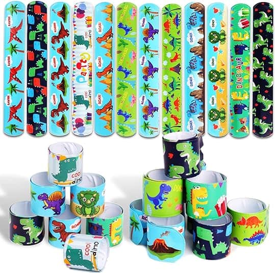 Dinosaur Slap Bracelets bring excitement to your wrist with vibrant designs featuring detailed dinosaurs. Easily worn with a quick slap, these bracelets don't just accessorize but also offer a playful touch to your style. Perfect for parties, they make fantastic favors, adding a dose of dino delight to the celebration. These bracelets ensure both fashion and fun for everyone!