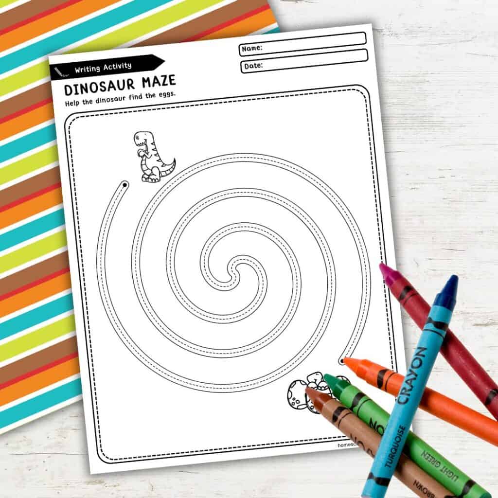 The dinosaur maze activity is a fun and engaging way for kids to practice problem-solving and fine motor skills. Little learners will guide the dinosaur through the maze to find its eggs, building focus and patience along the way. With every twist and turn, they’ll also strengthen hand-eye coordination.