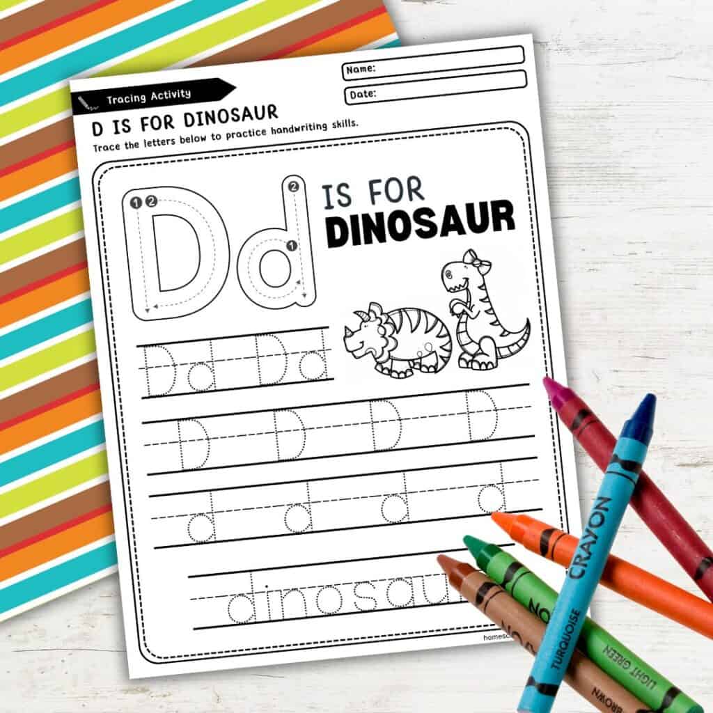- Letter tracing: Practice uppercase and lowercase letters with a D is for Dinosaur activity.