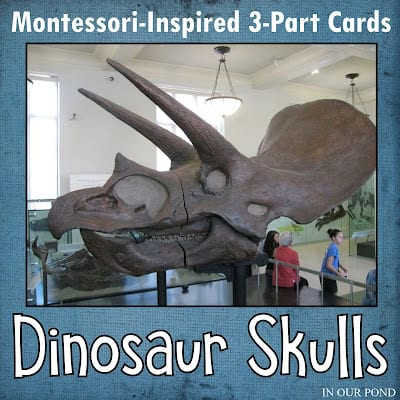Kids will begin to recognize unique features of a variety of dinosaurs with this set of Montessori-inspired dinosaur skull cards.