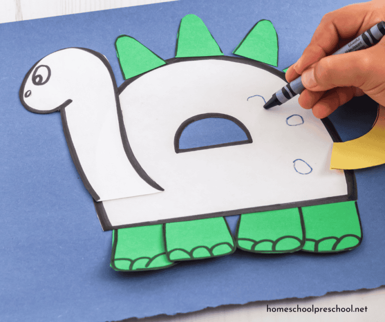 Add this letter D dinosaur craft to your dinosaur themed activities. It’s also a great addition to your Letter of the Week activities, as well.