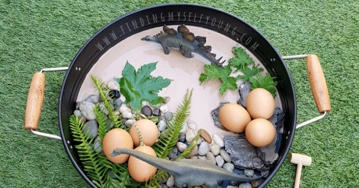 Combine a little science with play for this dinosaur themed sensory play! This activity combines your classic science fair volcano experience with a dinosaur play theme. Kids love the sensory experience, and they just might remember it in a few years when they learn more about dinos.