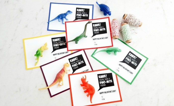 Best for: Candy-free classrooms or kids who love small toysWhy they work: Pairing a simple Valentine card with a small dinosaur toy makes this option exciting without being overwhelming. Preschoolers love the hands-on element, and there’s no reading required.Prep level: Attach the toy to the card with tape or string.These dinosaur Valentines feel special without adding much extra work. The cards are simple, and the toy dinosaurs are easy for little hands to enjoy long after Valentine’s Day is over.