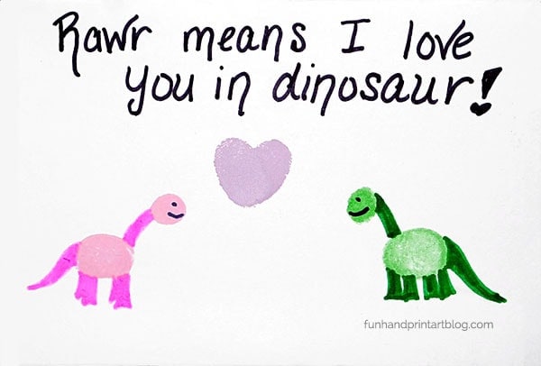 Best for: Moms who want a keepsake-style Valentine activityWhy they work: This option turns a simple dinosaur Valentine into a meaningful craft using fingerprints or handprints. Preschoolers enjoy the sensory experience, and the finished card feels personal.Prep level: Moderate—requires paint, supervision, and drying time.These dinosaur Valentine cards are a sweet choice if you want something more hands-on and memorable. They take more prep than printables, but they create a keepsake that parents often save.
