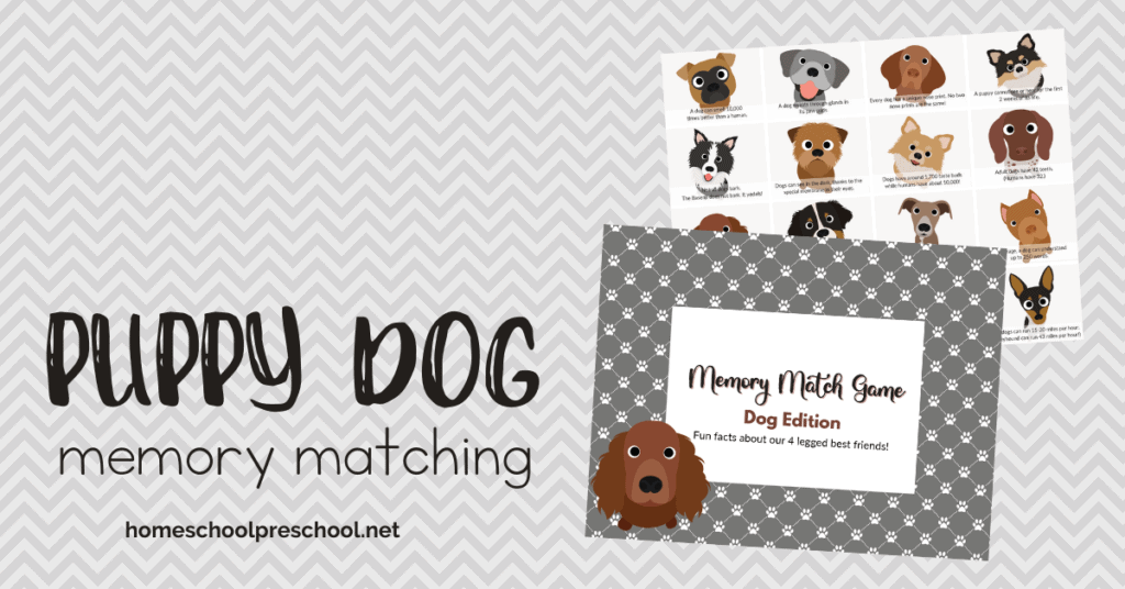 If you are looking for printable animal games to do with preschoolers, this dog memory matching game is sure to be a hit!