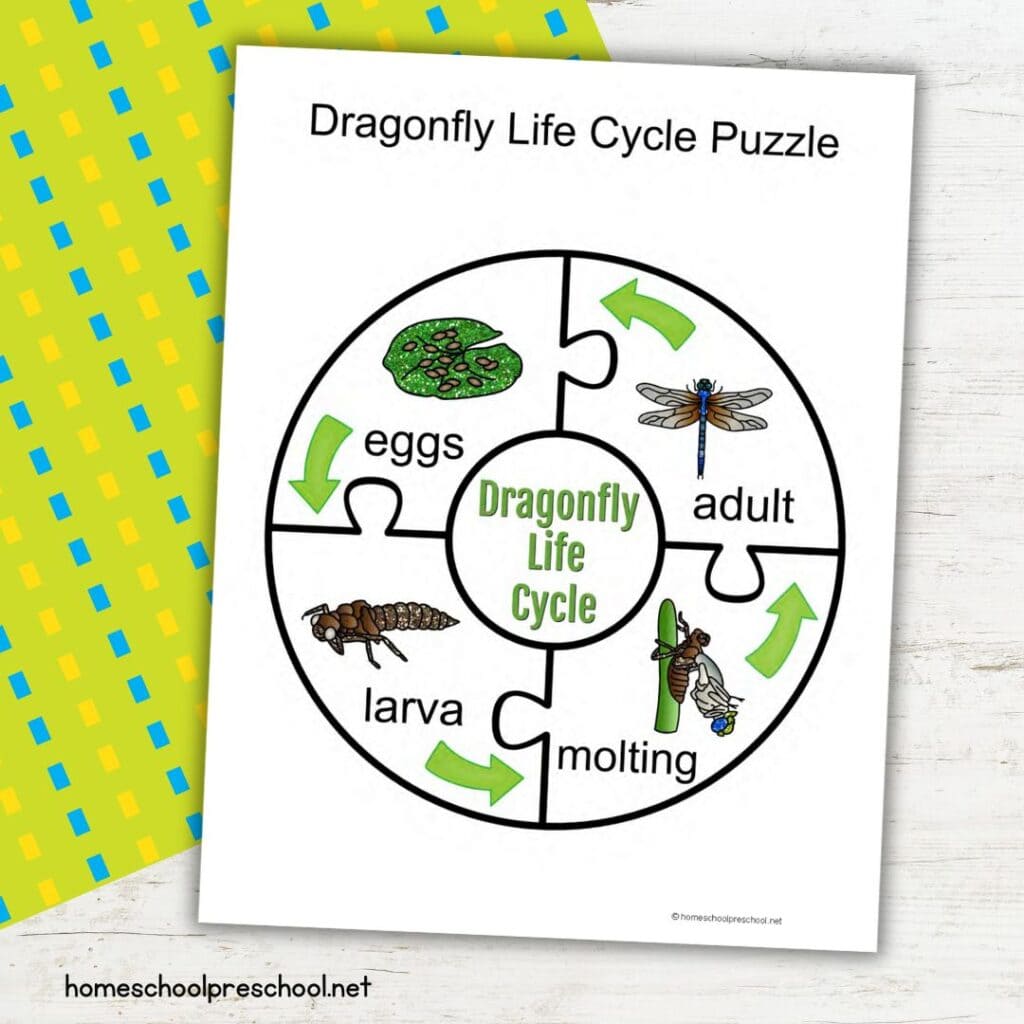 Pair with insect units or pond life themes in the spring or summer. The dragonfly life cycle puzzle and labeling page are an easy way to introduce early STEM concepts alongside books, crafts, or nature walks.