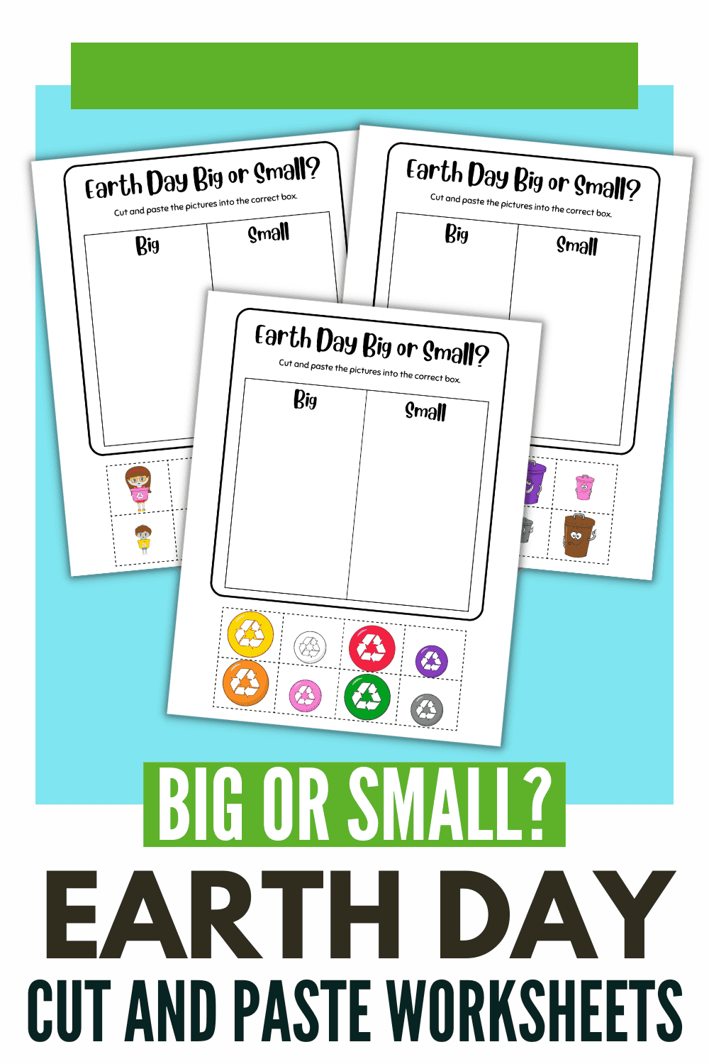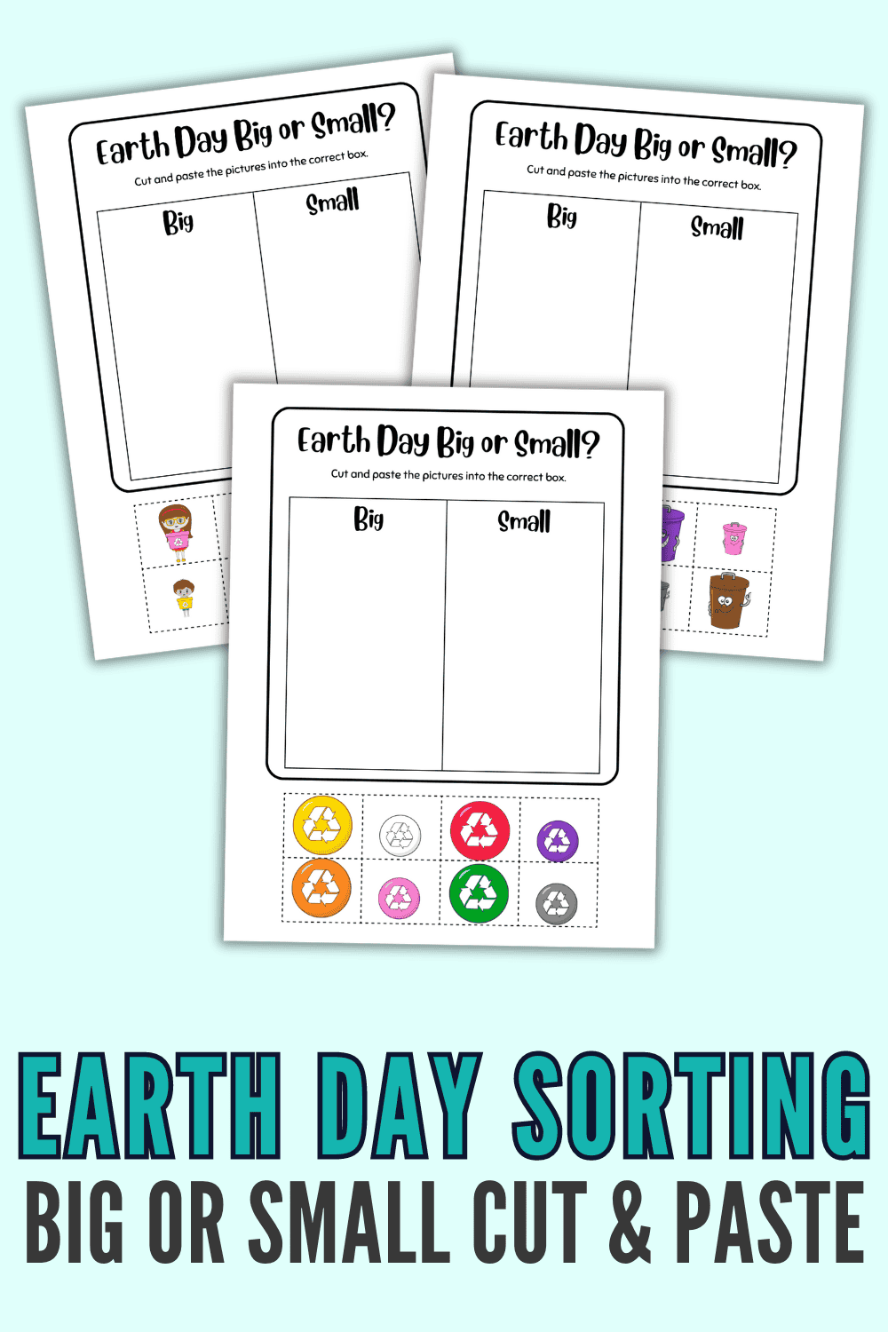 Earth Day Big and Small Cut and Paste Worksheets