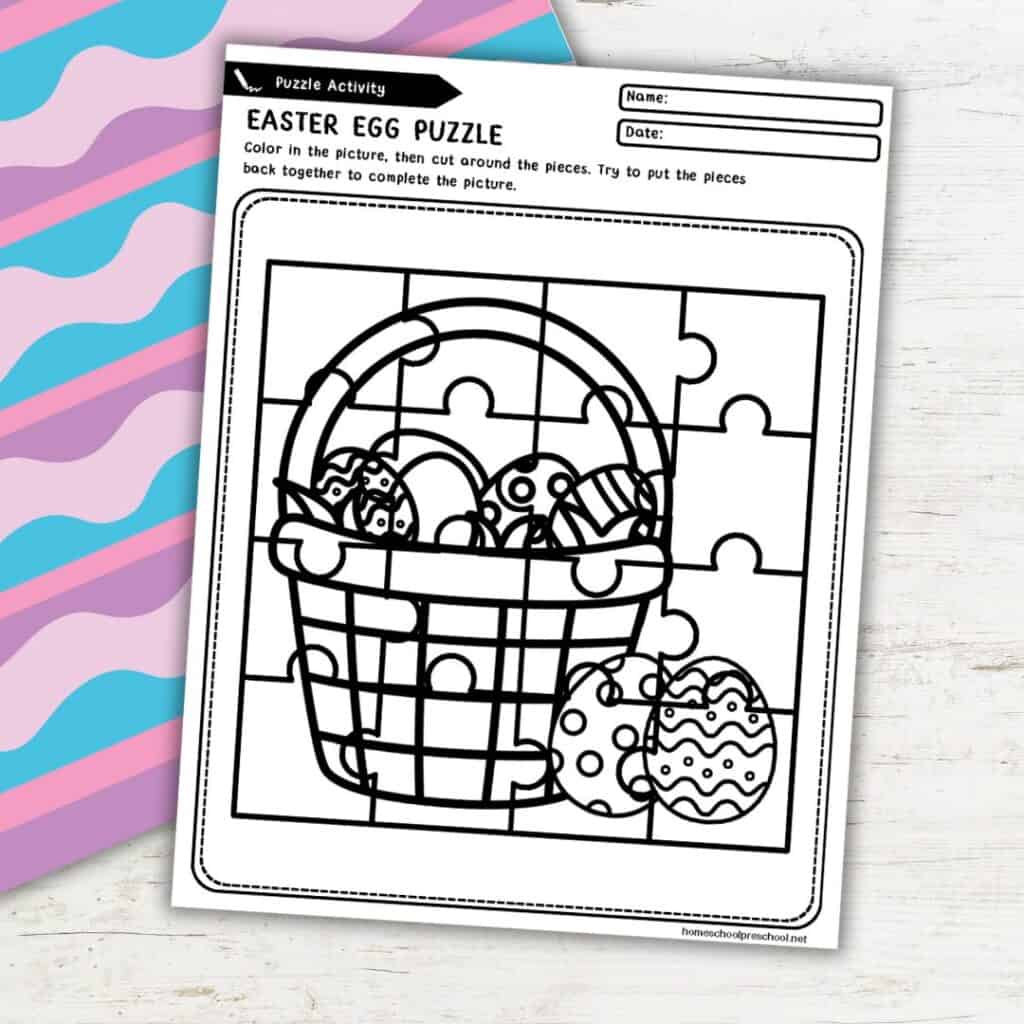 - Easter Egg Puzzle – Color, cut, and piece the puzzle back together for a fun challenge.