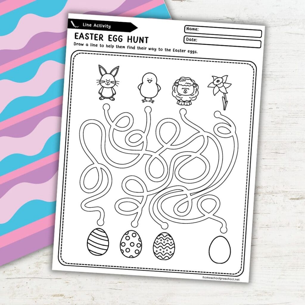 - Easter Egg Hunt Maze – Help the bunny find the way to the eggs in this simple tracing activity.