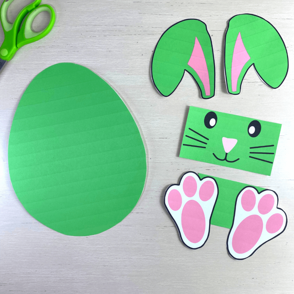 Glue the ears and feet on the egg. You can cut the feet off of the colored background if you choose to mix-and-match the accessories.