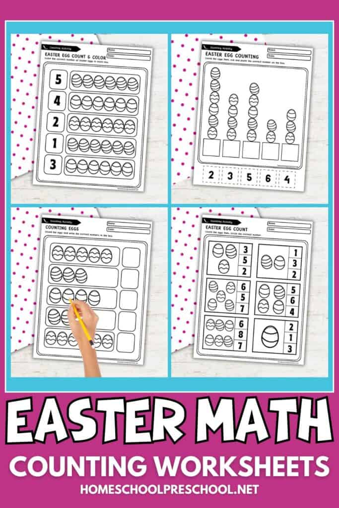 These Easter-themed preschool math worksheets are a fun and engaging way to help little learners practice their numbers. Kids will count, match, write, and color with these printables while playfully developing early math skills. This set makes counting practice simple and exciting, perfect for homeschool and classroom use.