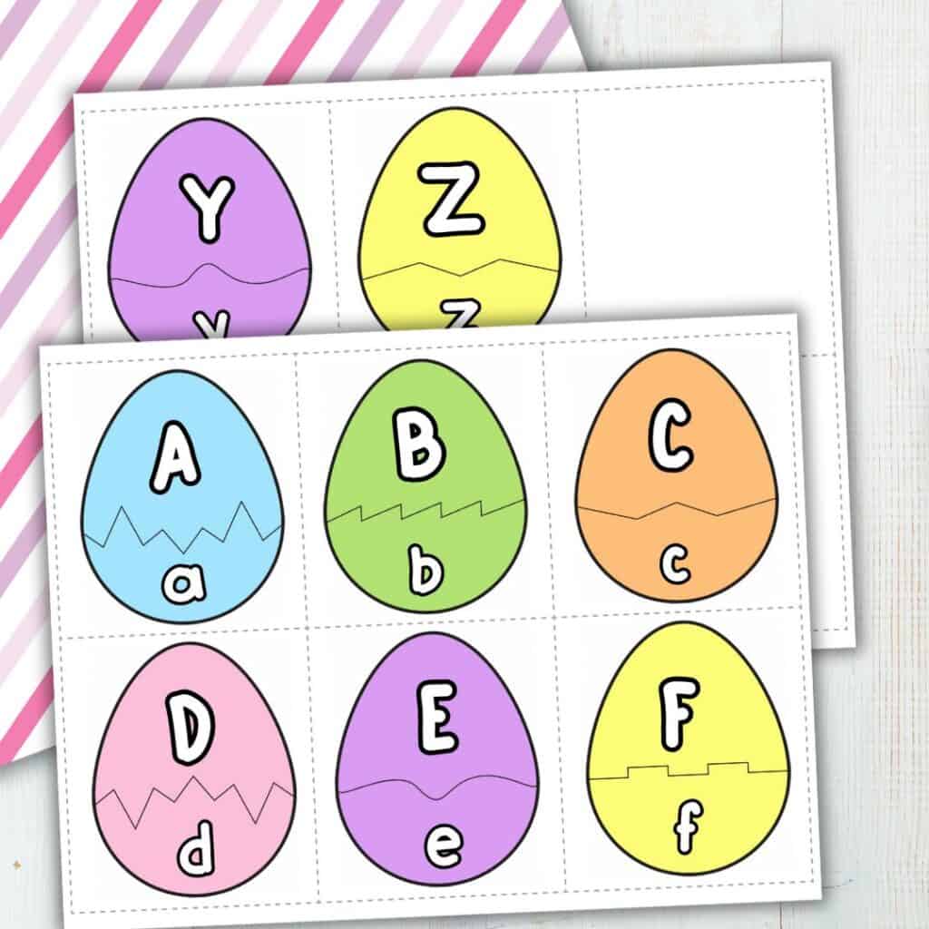 - A full set of Easter egg letter-matching cards (A-Z)