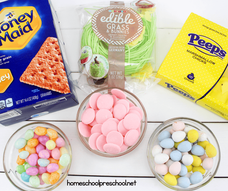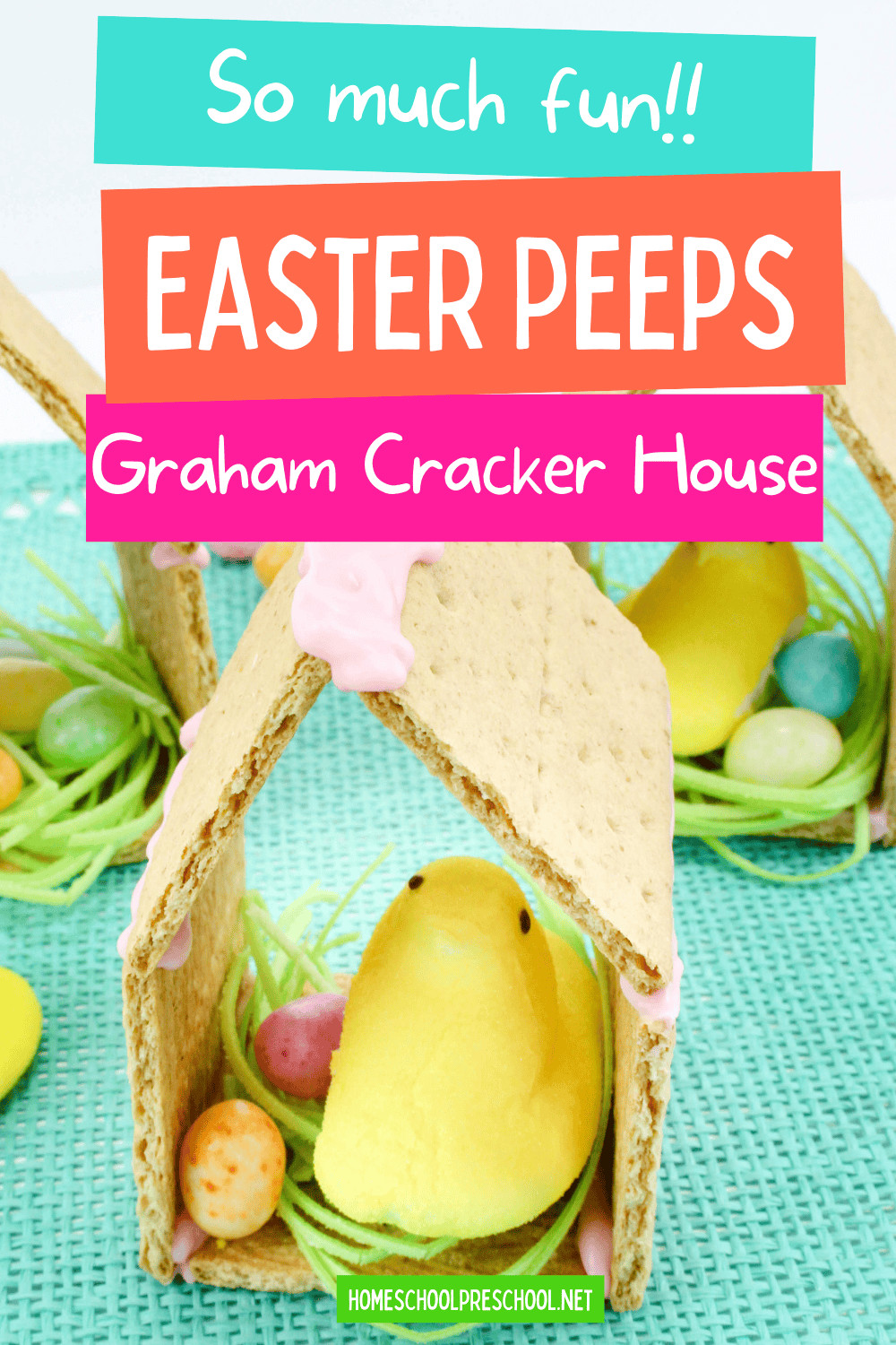 Just a note: If you let your little ones eat a Peep and a graham cracker before starting this activity, they’re more likely to make the Easter Peeps House without doing much snacking as they go.