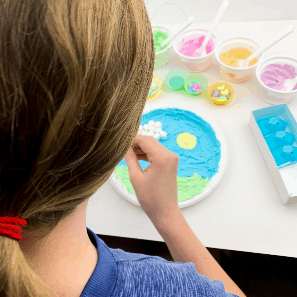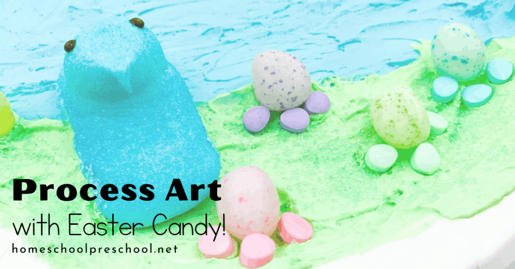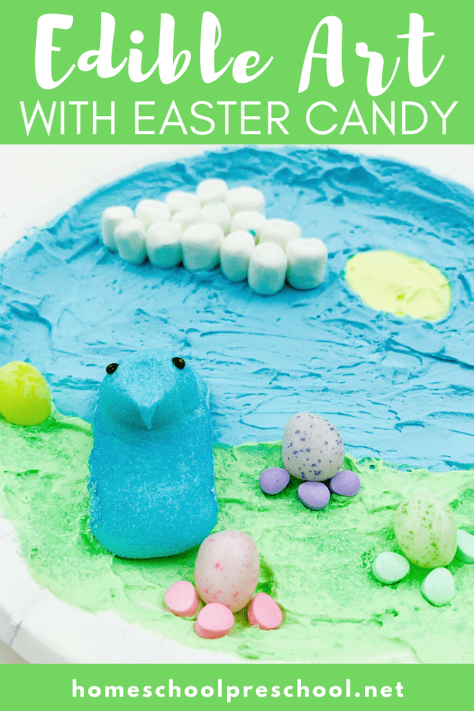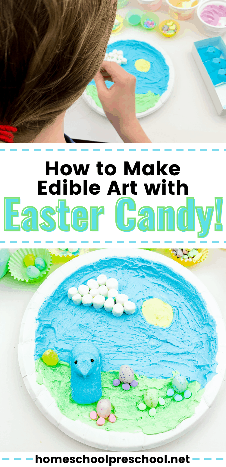 Preschoolers are going to love creating this edible Easter art for kids featuring their favorite Easter candies.