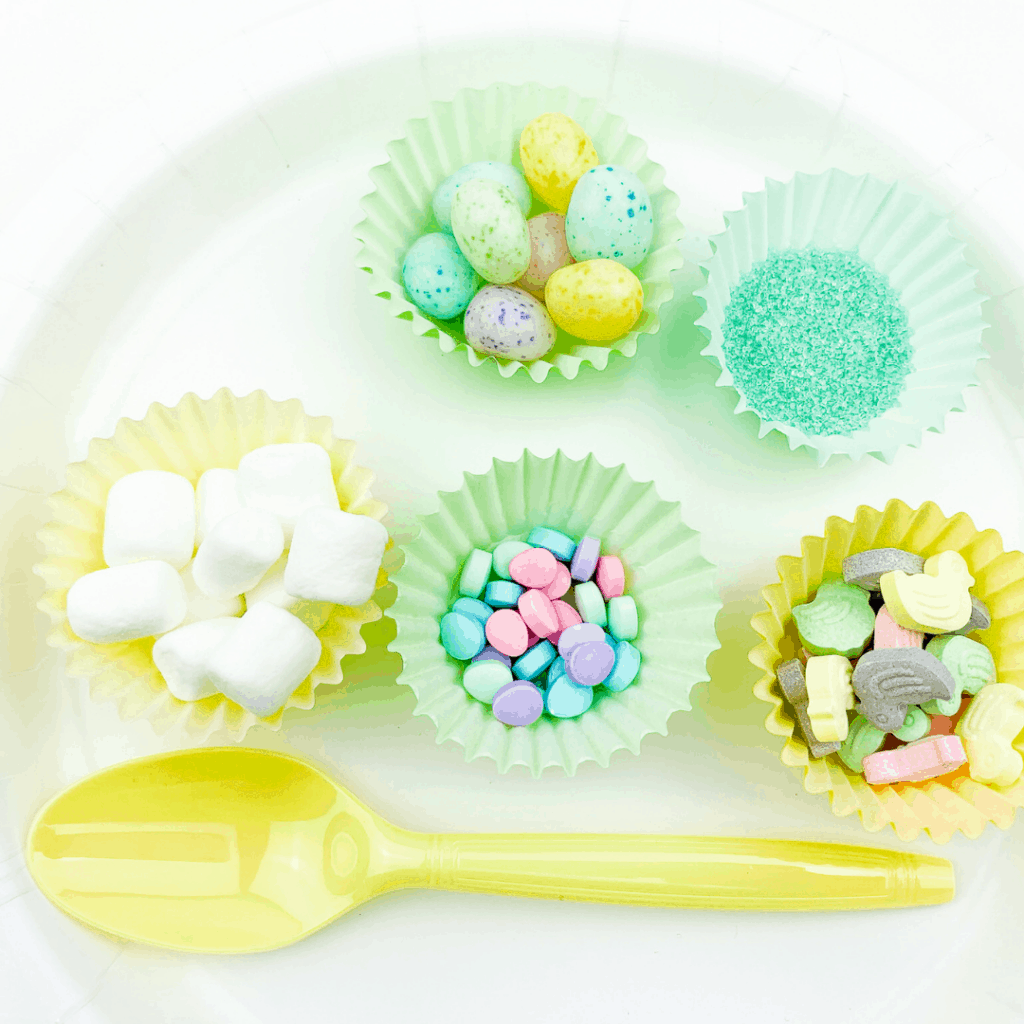 - Easter Candy: M&Ms, Sprinkles, Peeps, Jelly Beans, Marshmallows, etc.