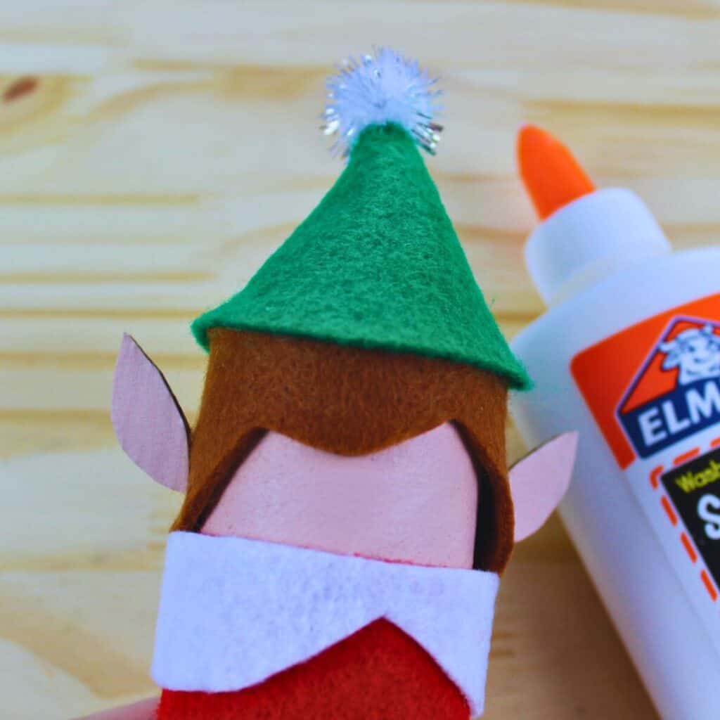 - Using paint markers, draw the elf's eyes, nose, and mouth to give it a cheerful expression.