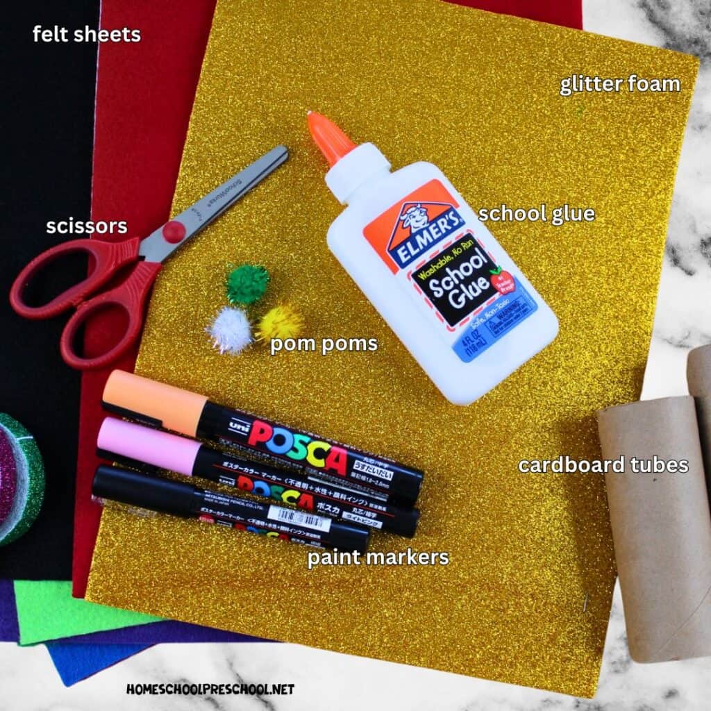 - felt (adhesive felt would be quick, easy, and mess-free!)