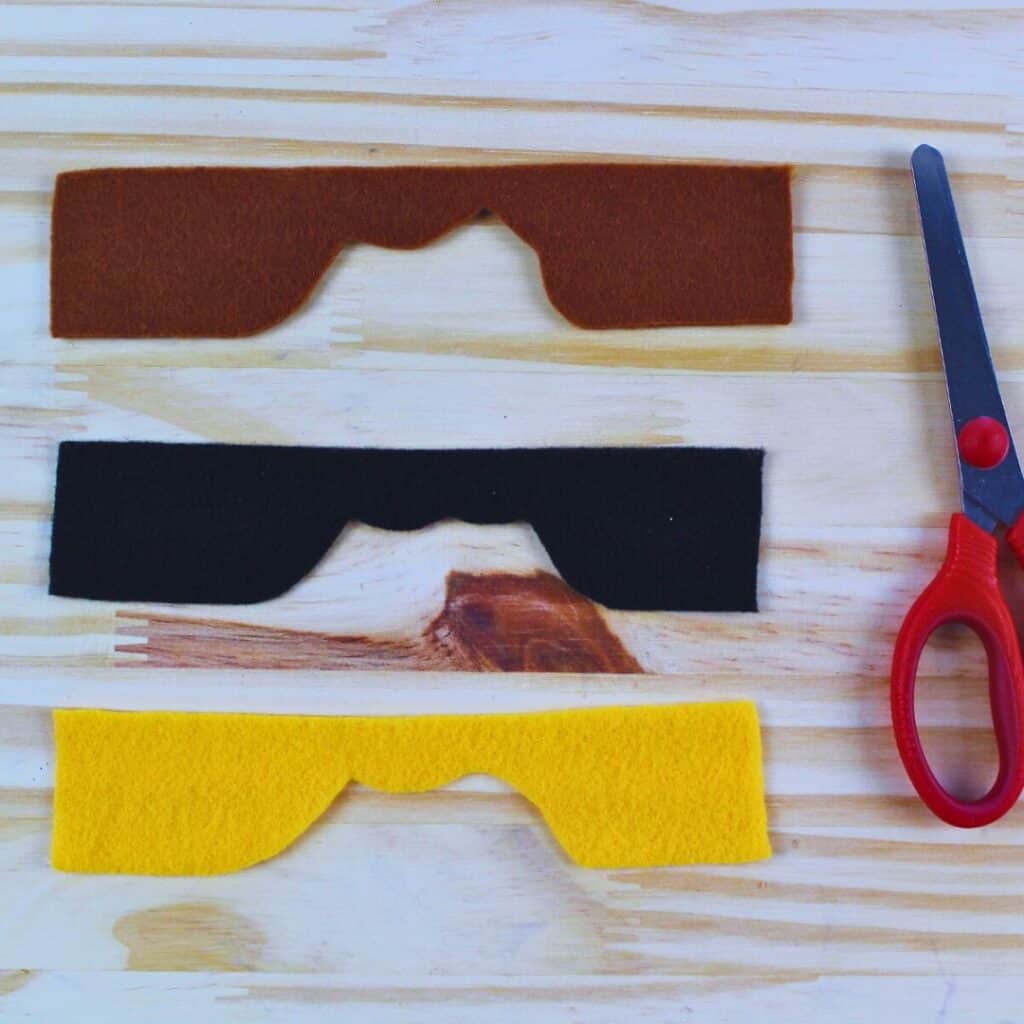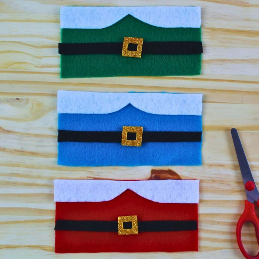 - Cut a small square From the glitter foam sheet to serve as the belt buckle.