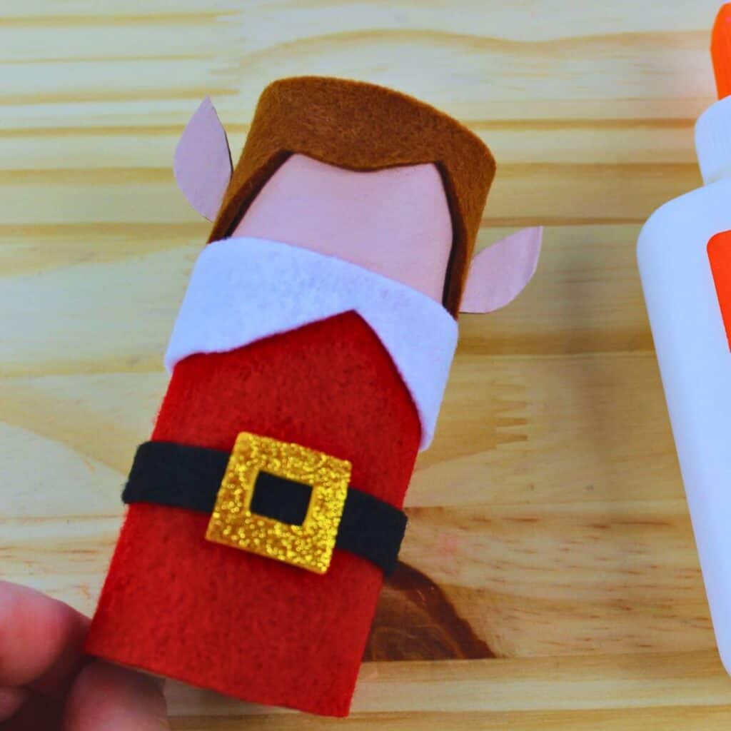 - Cut a rectangle of colored felt to form the elf's clothing, ensuring it's long enough to wrap around the tube.