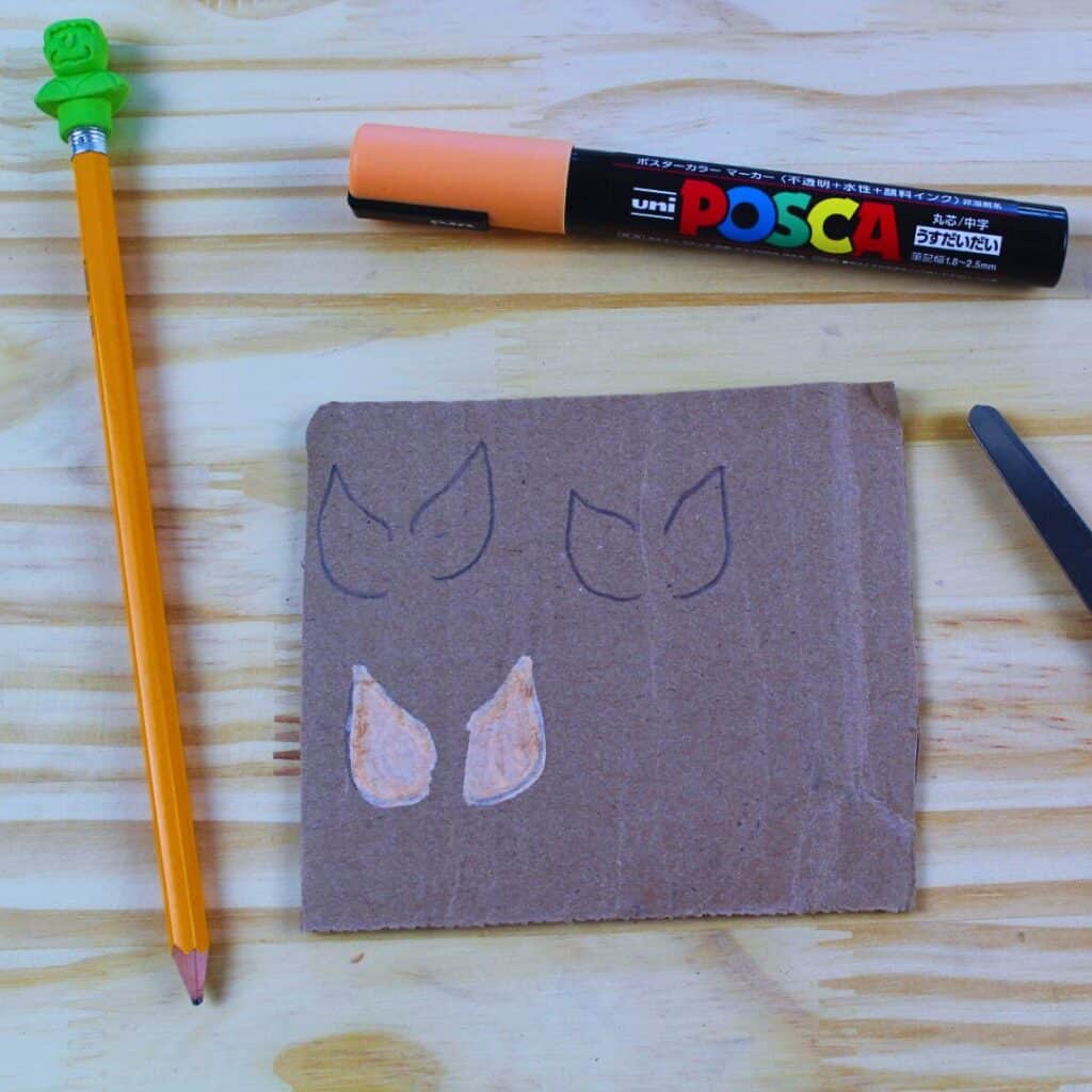 - Glue the ears to the sides of the tube, aligning them with the face area.