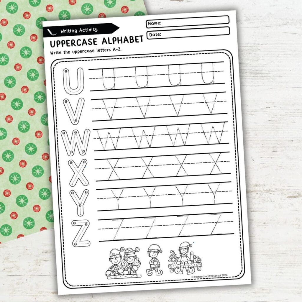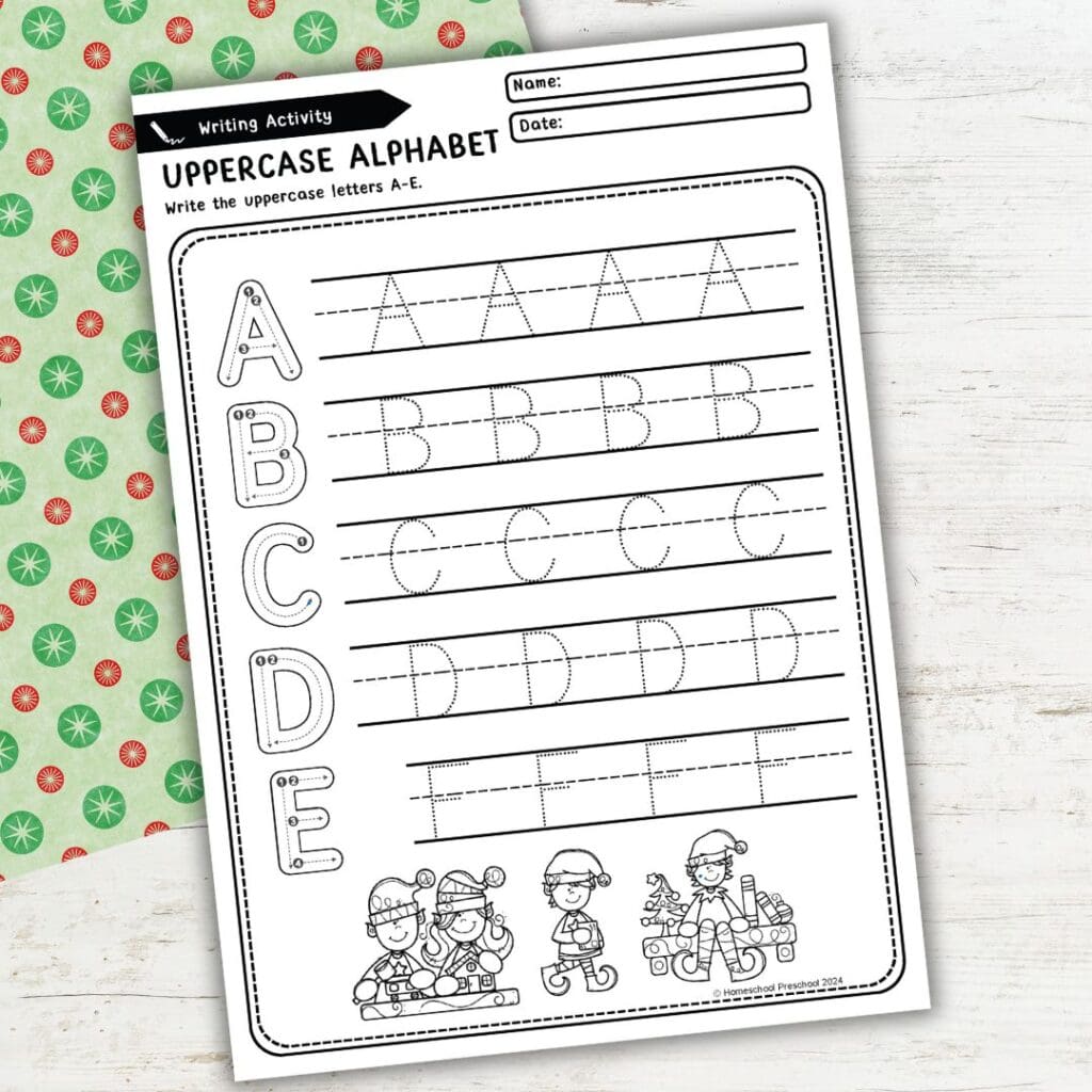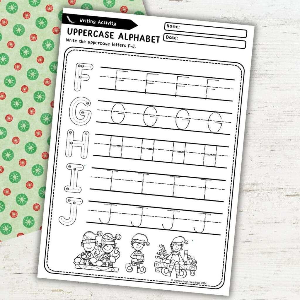Are you looking for a fun way to boost your preschooler’s handwriting this holiday season? Our elf handwriting worksheets are the perfect solution! These worksheets help kids practice the important skill of writing uppercase letters correctly!
