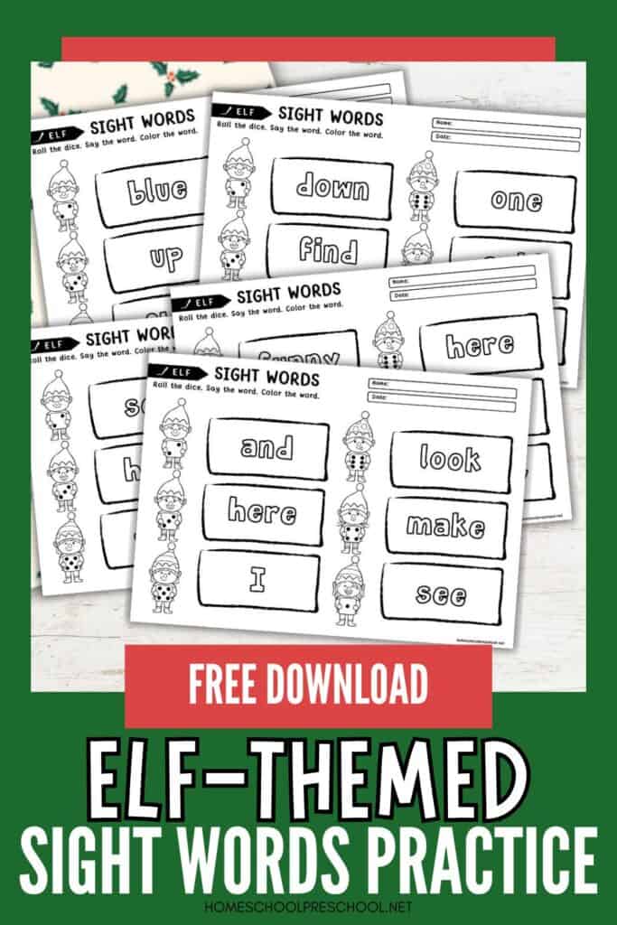 Our elf worksheets are made just for little ones to make learning sight words fun and exciting! These free preschool printables help kids recognize and master common sight words essential for becoming great readers.