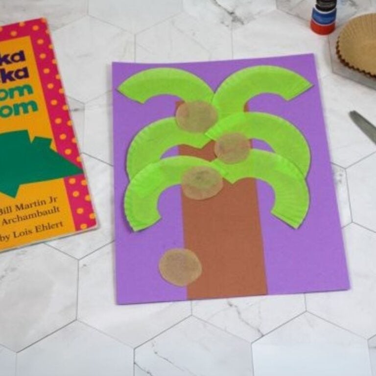 Kids can build their very own coconut tree and add alphabet letters just like in the book. It’s a fun way to play with letters and work on fine motor skills, too.