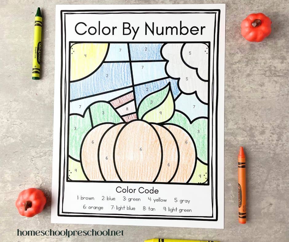 These color by code pages will make a great addition to your fall printables for preschool and kindergarten kiddos.