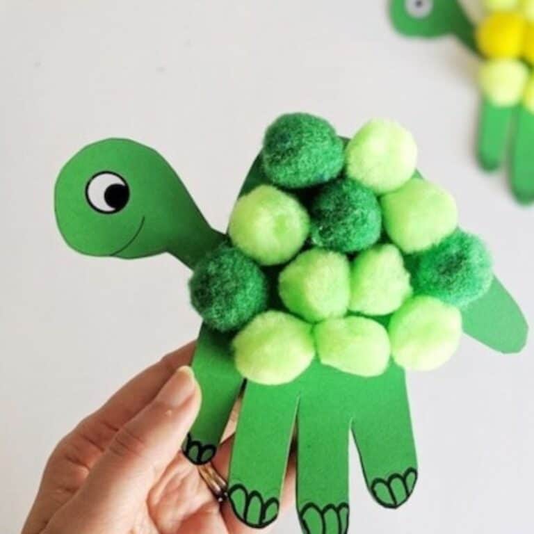 Kids can make this “turtley awesome” card from Red Ted Art for Father's Day, his birthday, and many other fun occasions. The craft is made to look like a turtle with the green construction paper handprint, the addition of a head, and pom poms in various shades of green to make up the shell.