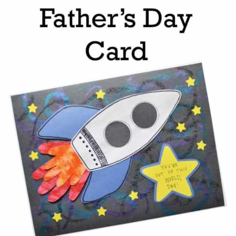 Tell Dad that he's out of this world amazing with a cute space-themed card featuring handprint flames shooting out of a rocket! Thanks to the printable template, it's quick and easy to make.