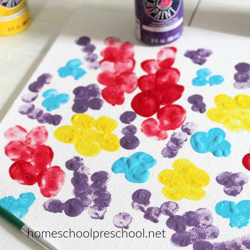 Fingerprint flower art is perfect for spring and summer. This adorable canvas is the perfect Mother’s Day craft for preschoolers to make!