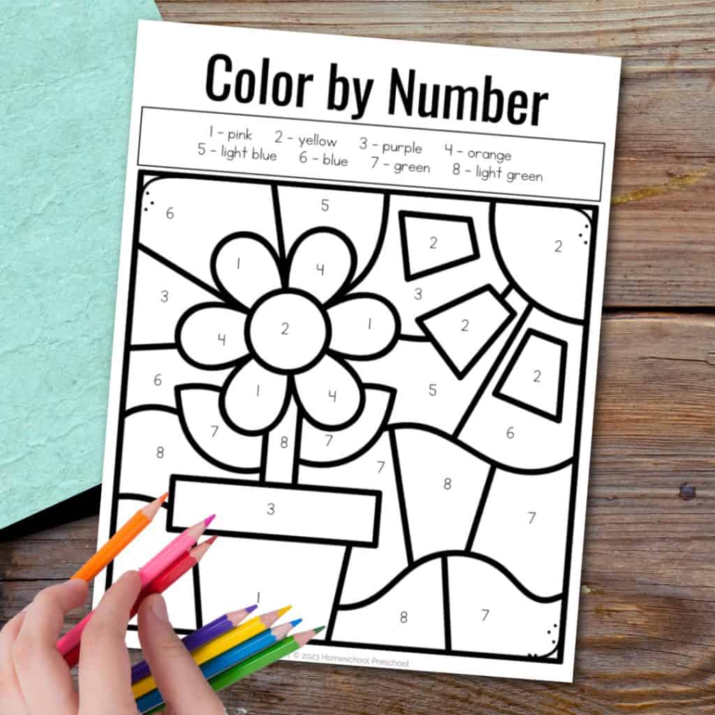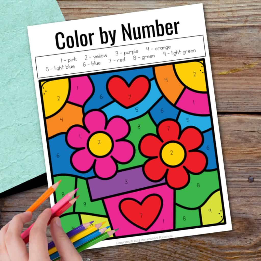 Don’t miss our free flower color by number printables! These fun and educational worksheets are perfect for preschool parents and teachers looking for an engaging way to help kids practice their number recognition and coloring skills.