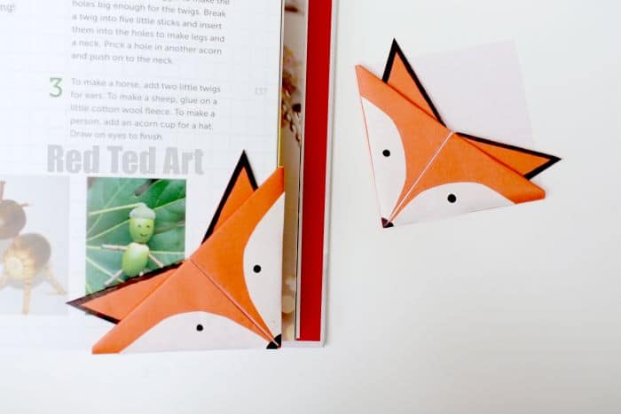 These clever fox corner bookmarks are a fun and easy way for kids to mark their place in their favorite books. They can create their own sly little fox to peek out from the pages using just paper and a simple folding technique.