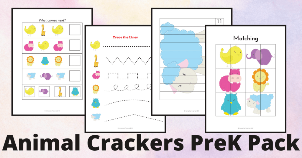 Your kids ages 3-6 will love this free Animal Crackers preschool printables. This free printable has 40+ pages full of learning activities for your little ones.