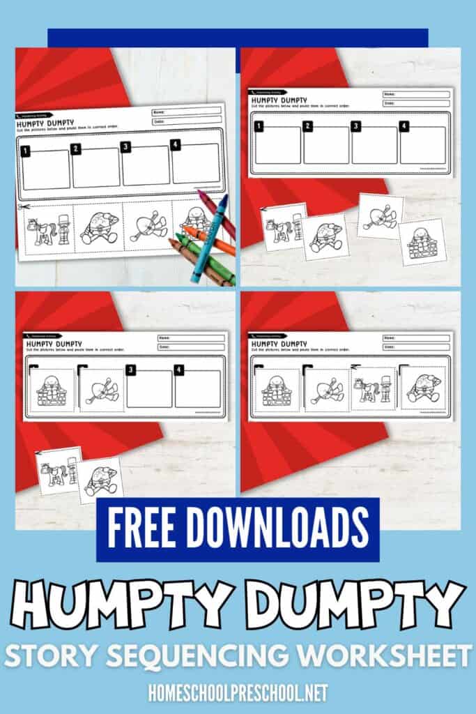 Kids can learn so much from this activity! By sequencing the events of Humpty Dumpty, they practice storytelling skills and develop an understanding of order and logic. This activity also helps strengthen fine motor skills as they cut and paste the pictures.