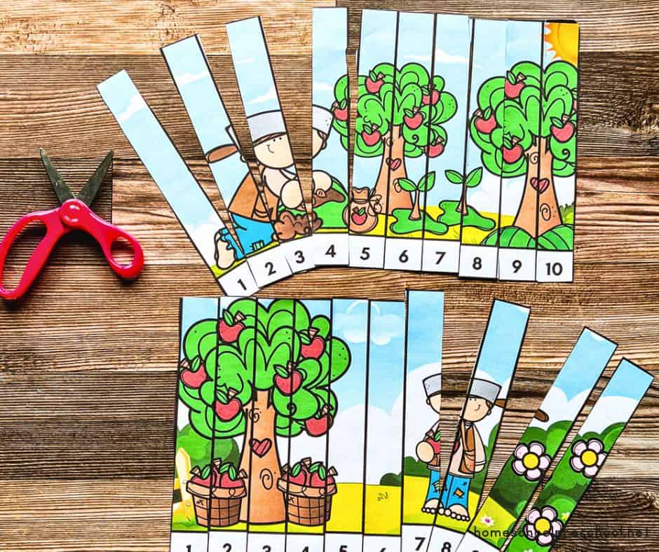 Imagine your preschoolers’ excitement as they piece together Johnny Appleseed’s story while practicing their counting skills. These puzzles not only enhance number recognition but also help develop problem-solving abilities.