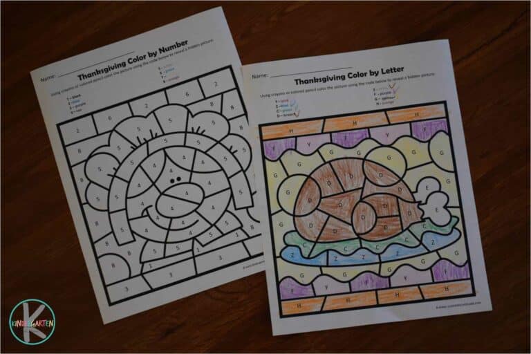These color by number Thanksgiving pages are such a fun way for toddler, preschool, pre k, kindergarten, and first grade students to review their numbers in November while strengthening fine motor skills.