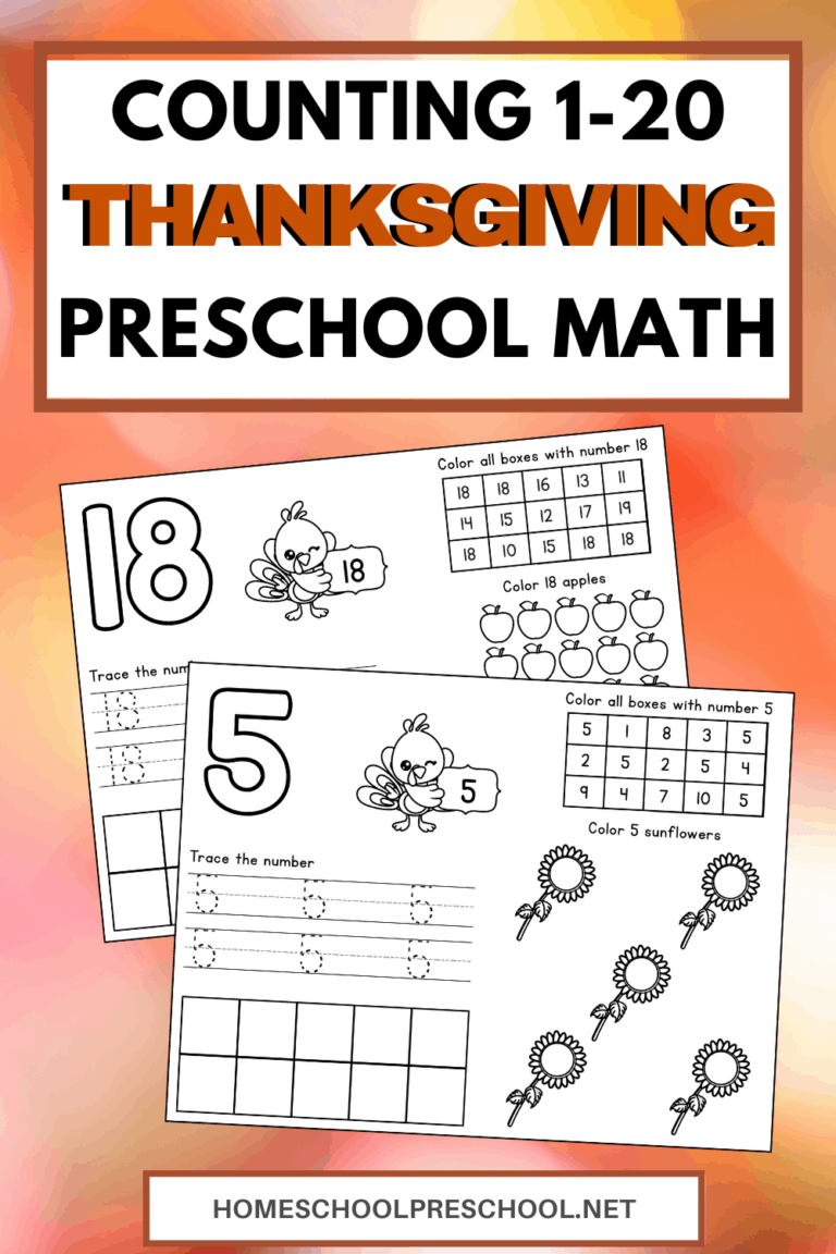 This pack of Thanksgiving printable activities was designed with your preschoolers in mind. Little ones will focus on early math and literacy skills with these fun activities.