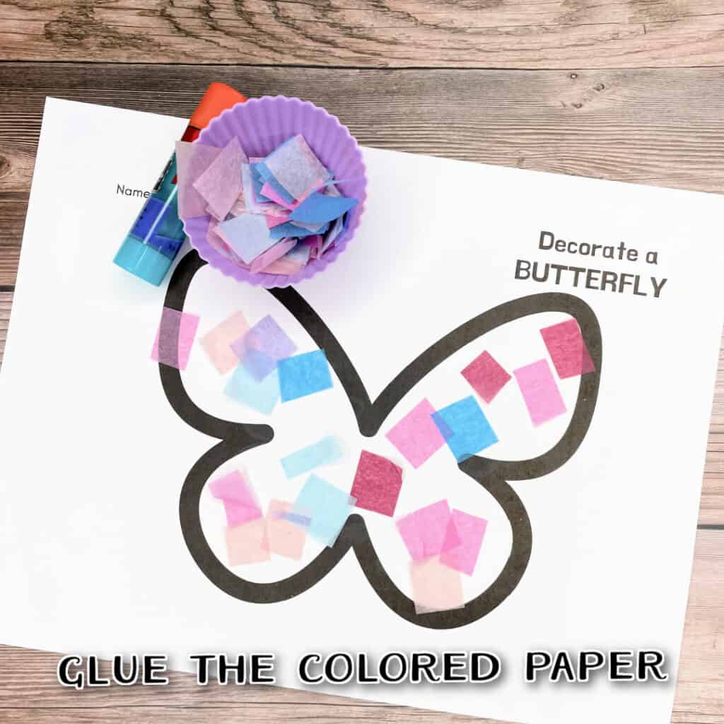 Toddlers can scrunch and glue tissue paper onto a butterfly outline — no scissors required! - Christmas Coloring Printables